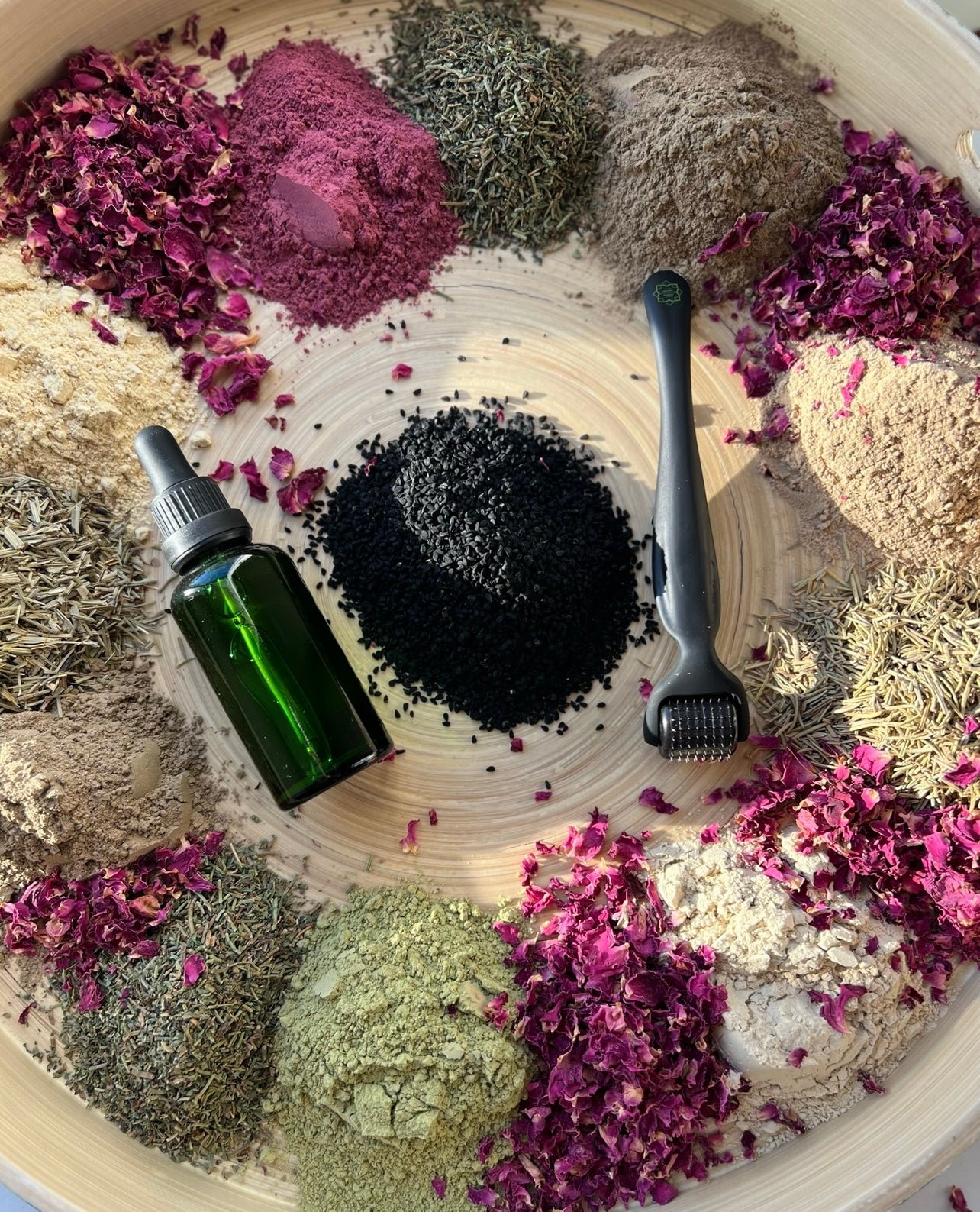 We study and select each herb based on centuries of traditional use and modern scientific research. Every remedy combines the wisdom of ancient herbal practices with evidence-based methods, ensuring safe, effective formulations that support hair growth, glowing skin, hormonal balance, and overall wellness.